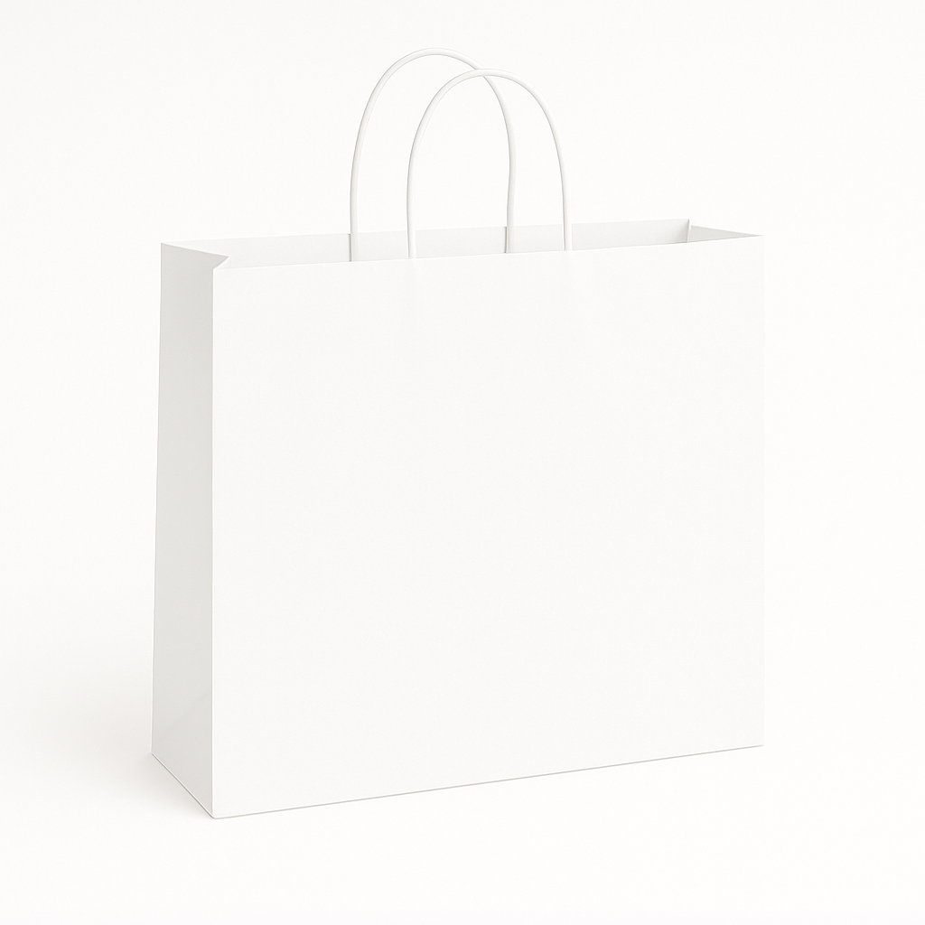 These white shopping bags feature handles and a gusset and are more tear resistant, providing durability, convenience, and simple storage options.