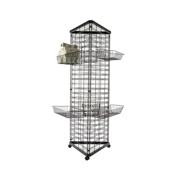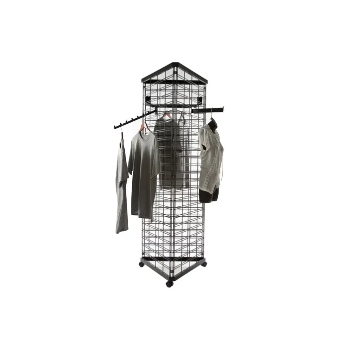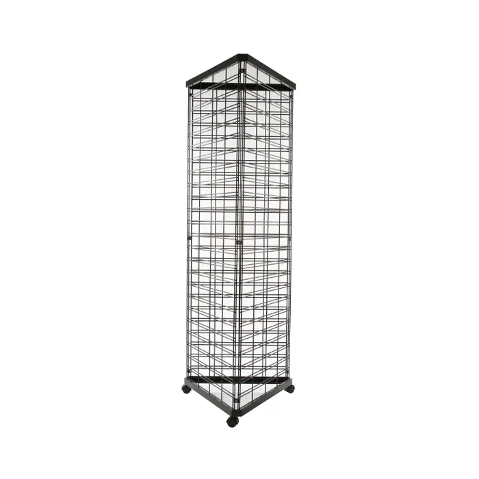 Our triangular base for Grid Panels is a sturdy base that accepts three grid panels to create an all-purpose merchandiser for heavier merchandise. Base includes a set of three casters to make it easier to move your merchandiser around your space. Use with Grid Panel accessories such as shelves, hangrail brackets, face-outs and hooks to create a wide variety of merchandising options.