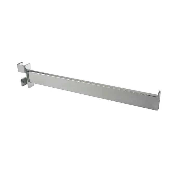Used for double hanging by attaching to upright of rack. Arm is 1/2 x 1-1/2 rectangular tubing and is 16″ long with tab at end to prevent garments from sliding off. Twists on to square tubing upright.