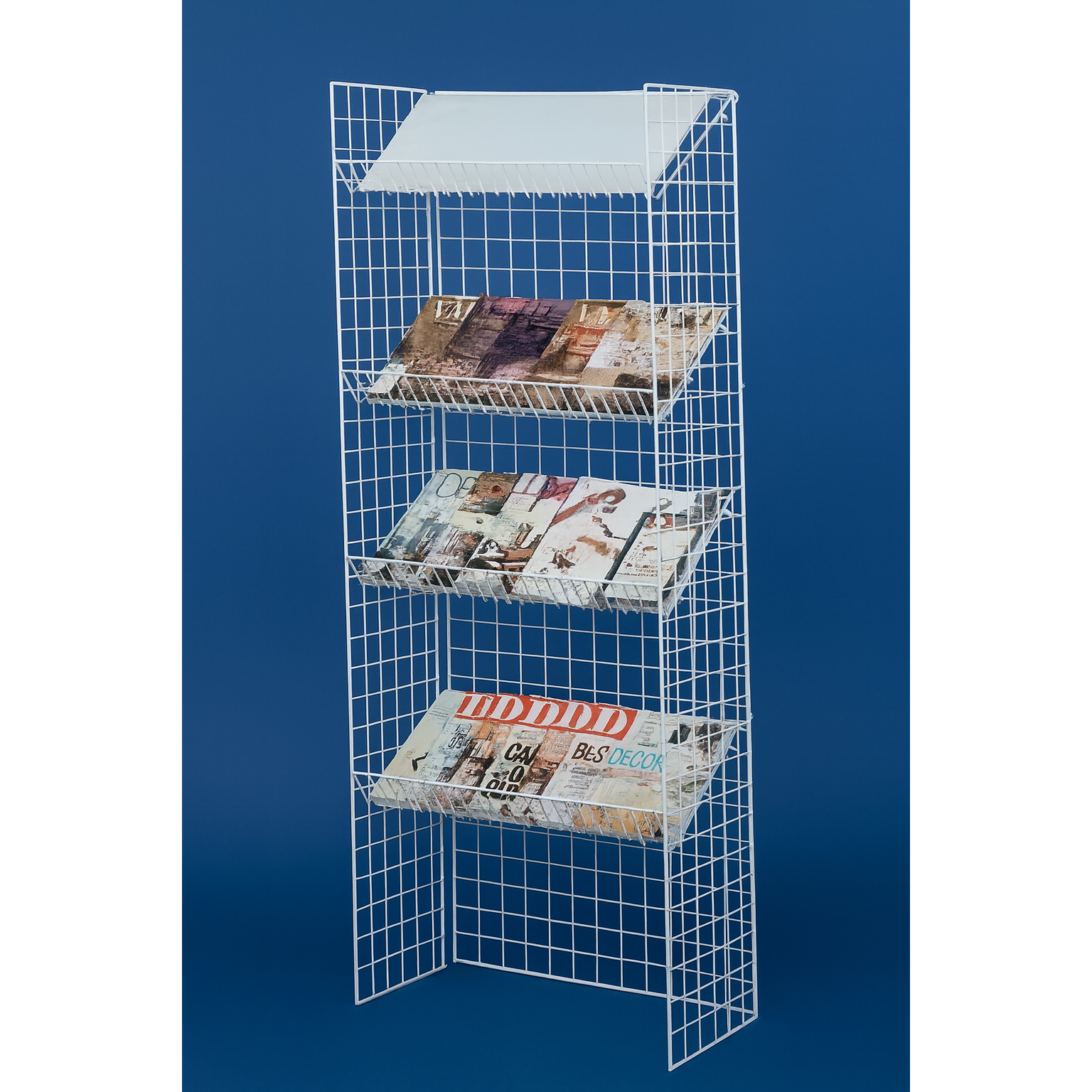 White wire shelf unit with 4 shelves.