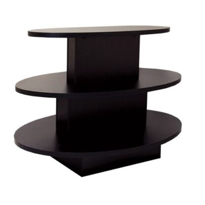 3 Tier Display Tables (Oval Shape) in black melamine finish.