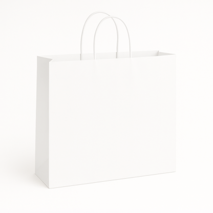 These white shopping bags feature handles and a gusset and are more tear resistant, providing durability, convenience, and simple storage options.