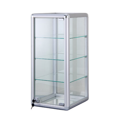 14″L x 12″W x 27″H Silver Aluminum Frame Countertop Glass Display Case