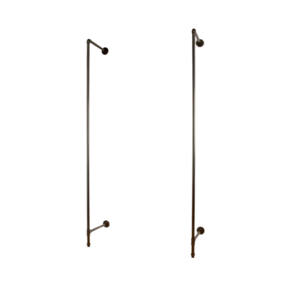 Pipeline Outrigger allows retailers to fully utilize every inch of selling floor space. This Outrigger features½” Slots on 1″ centers. The unit also includes mounting flanges and floor levelers. Constructed from 1¼” diameter plumbing pipe, for years of service, the outrigger has an attractive and trendy anthracite grey finish.